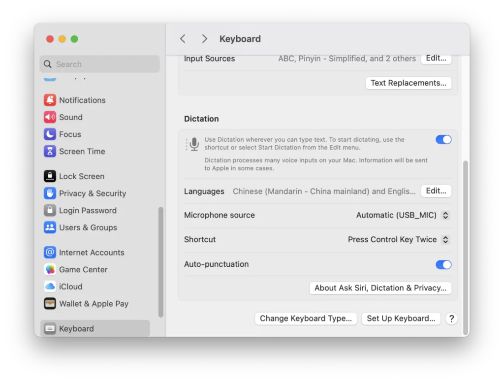 在系统设置里一翻,果然,只要双击 Ctrl(或者其他),就能启动语音输入。