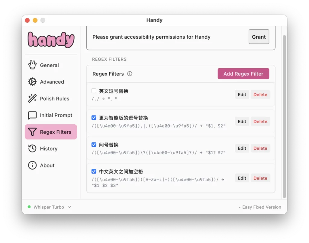 于是我 Fork 了一份 Handy 的代码,手动加上了Whisper 模型本来就支持的初始提示词( Initial Prompt )选项。