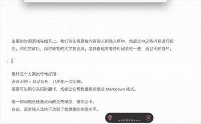 我甚至能明显感觉到思考效率的提升——思维不再被打字节奏打断,话语几乎直接流向了屏幕。